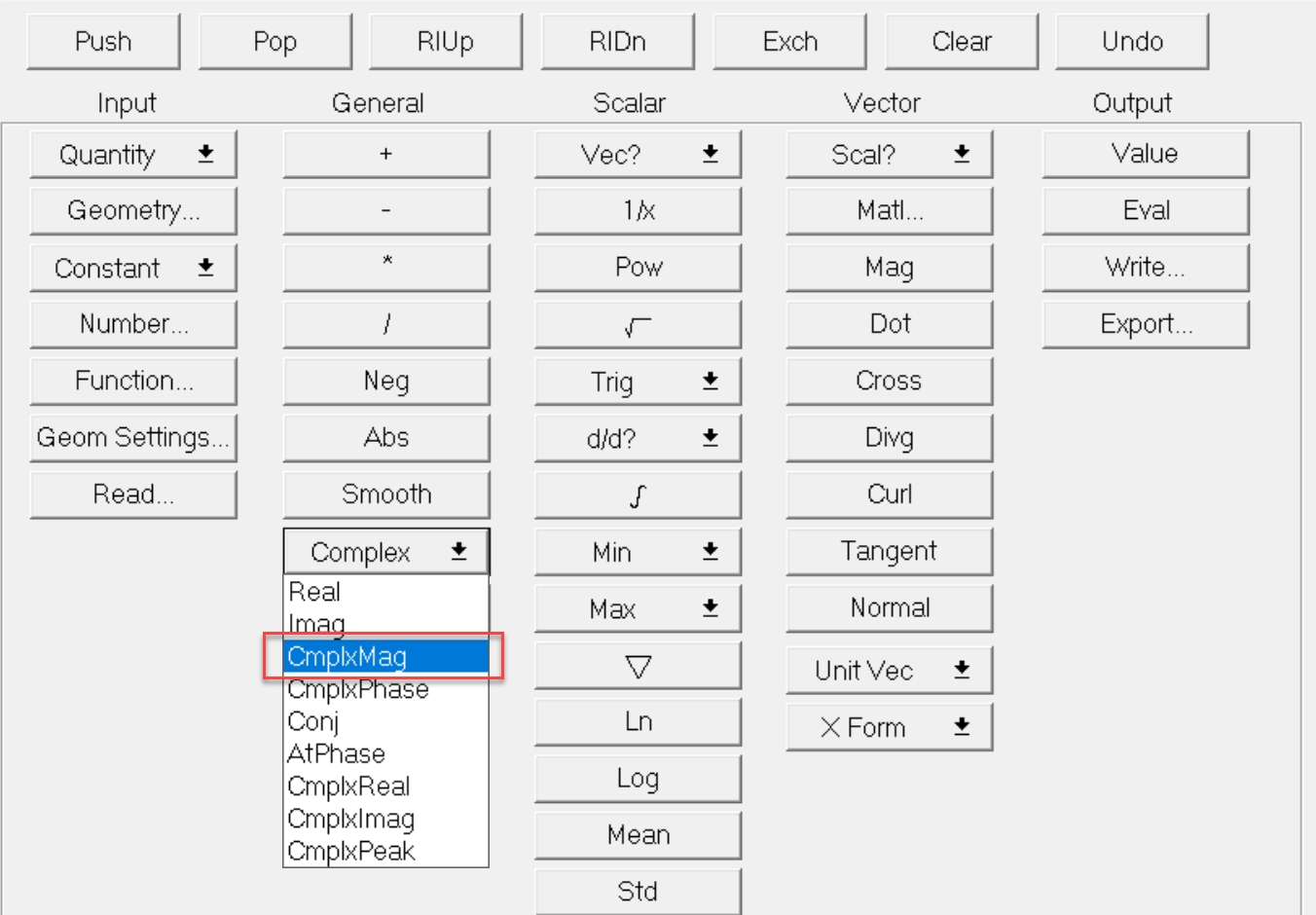 若模擬者使用的是Eddy Current Solver,向量內的數值會是複數(ex: [Bx,By,Bz]=[1+1j,2+2j,3+3j])。場量計算機會無法直接透過Normal來計算面法向量的分量,會需要先將向量內的數值透過複數運算(如圖2-9),將數據轉換為實數向量,再使用Normal指令。看到這邊,讀者也可以回想上頁的渦流場面磁通量密度的計算,也是做了轉換計算,是相似的道理。