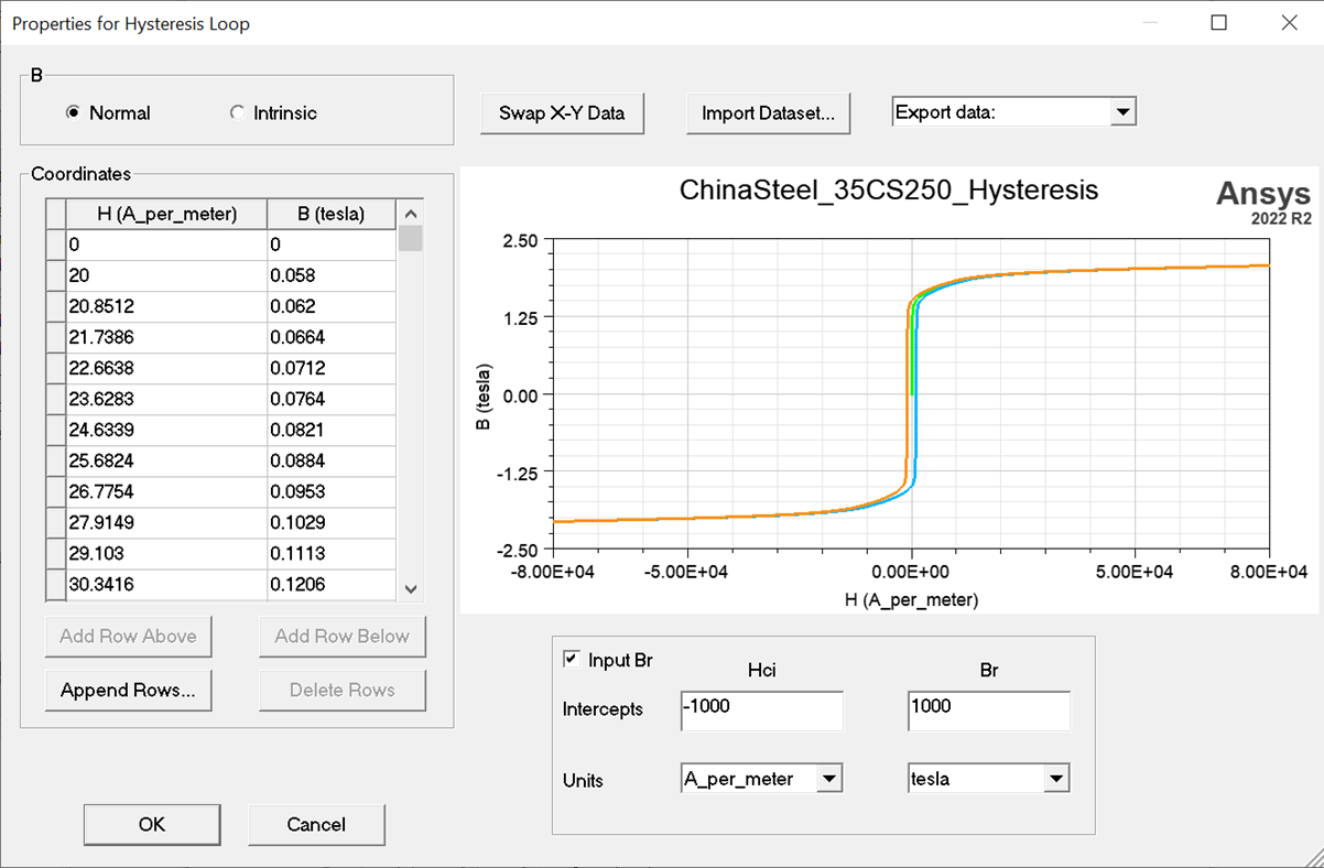 在Maxwell的模擬分析中,使用者可以利用鐵損的磁滯模型(Hysteresis Model),在軟體中建立軟磁材料完整的磁滯迴路(Hysteresis loop),並透過模擬分析觀察到外加磁場被移除後,軟磁材料所呈現的殘留磁力表現。