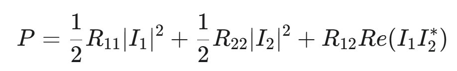 $$R12​$$，代表只有當 $$I1​$$ 和 $$I2​$$ 同時不為零時才會出現的額外功率損耗 。