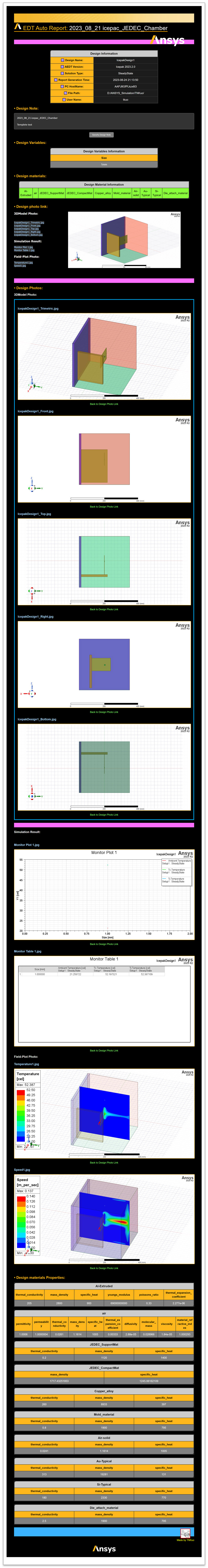 筆者利用 Icepak 將JEDEC Chamber的做模擬分析，再使用<mark style="color:blue;">**「One-Click Report Generator」**</mark>產出一鍵生成報告，如下圖3-8所示。
